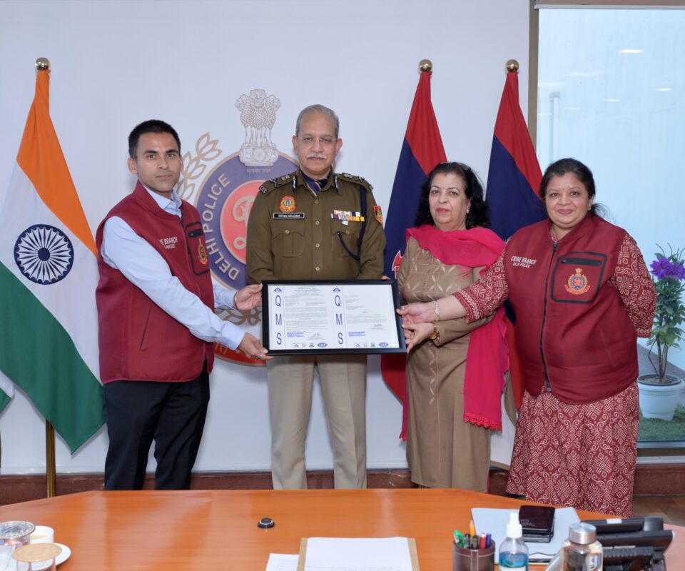 New Delhi: In a major boost to technology-driven policing, the State Crime Records Bureau (SCRB), Crime Branch of Delhi Police has been awarded the ISO 9001:2015 Quality Management Systems (QMS) Certification by the Bureau of Indian Standards (BIS), Government of India.