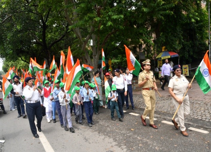 Students marched with unyielding energy, proudly carrying the Tricolour and chanting patriotic slogans that echoed through the streets. The rally transformed the city’s thoroughfares into a moving celebration, drawing cheers from bystanders and creating an atmosphere filled with national pride and togetherness.