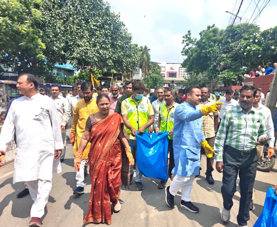 The Chairperson of the Standing Committee of the Municipal Corporation of Delhi, Satya Sharma, today actively participated in a joint cleanliness drive held in Shahdara North and Shahdara South zones under the ongoing “Delhi Ko Kude Se Azaadi” campaign. On the occasion, she personally took part in sweeping the road to convey the message of cleanliness and urged citizens to maintain hygiene in their surroundings.