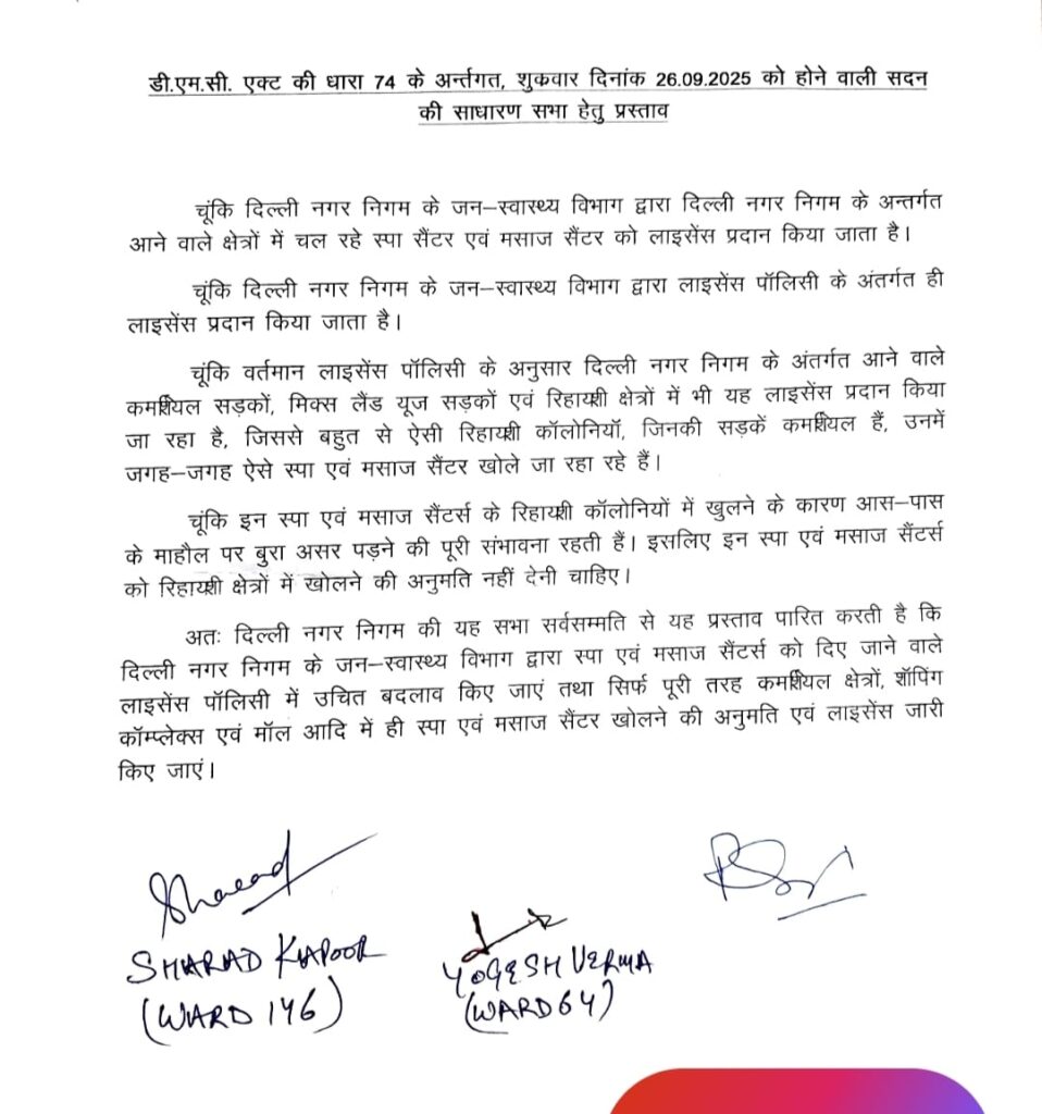 स्पा सेंटरों पर MCD की सख्ती—अब सिर्फ मॉल और शॉपिंग कॉम्प्लेक्स में मिलेगी इजाज़त?