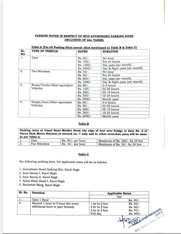 For convenience of the public at large and to have utmost transparency, the list of all MCD parking sites along with their details and authorized parking rates are already on the official website https://mcdonline.nic.in/portal of the Municipal Corporation of Delhi. A copy of rates is attached herewith also.