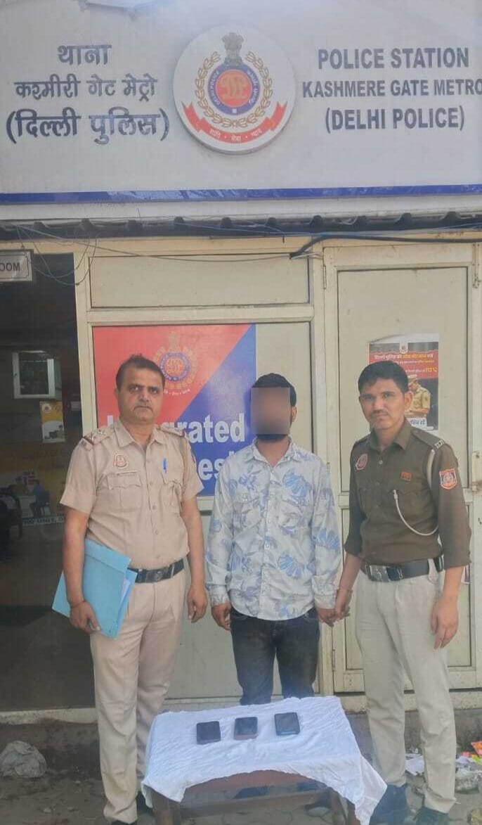 In a significant breakthrough against rising incidents of theft in the metro network, the Delhi Police has arrested a habitual mobile snatcher from the premises of Kashmere Gate Metro Station and recovered three stolen mobile phones, including a high-end Apple iPhone 15, within hours of the reported incident.