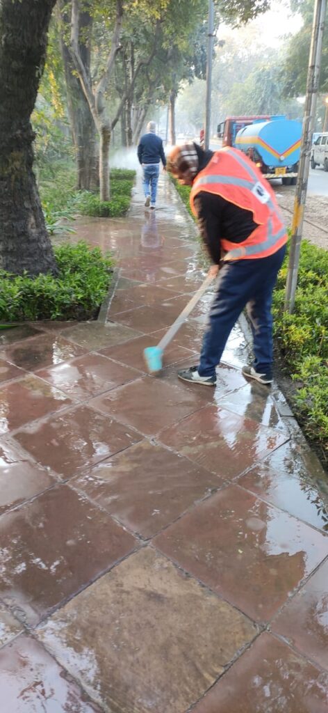 A strict zero-accumulation policy has been adopted, supported by 180–200 Safai Karamcharis deployed nightly, mechanized sweepers, and pressure-jetting machines. 25–30 porta cabins with emergency cleaning equipment have been set up, while a 24×7 Control Room at ICCC ensures real-time monitoring and complaint redressal.