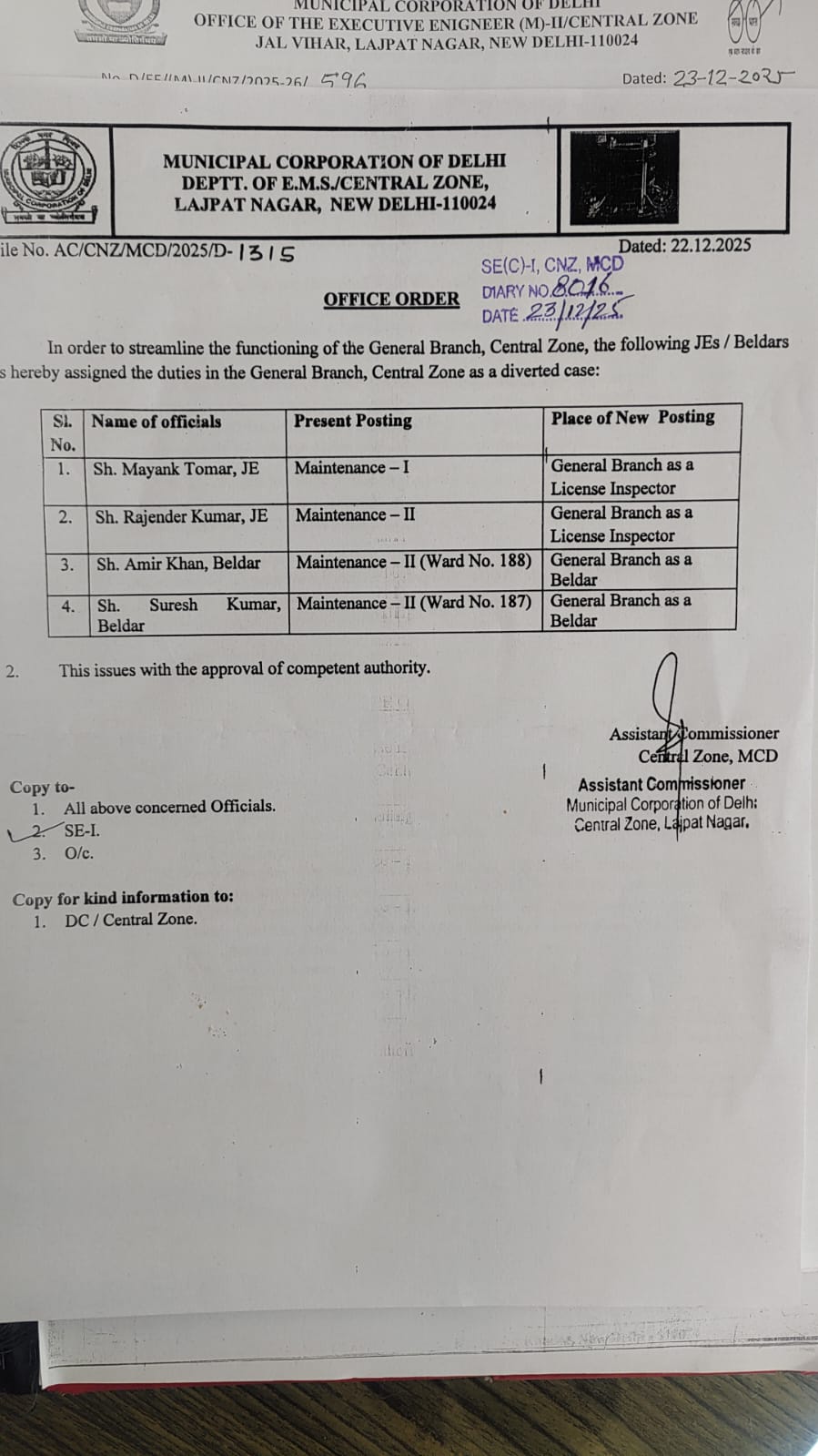 • मयंक तोमर, जो मेंटेनेंस वन डिविजन में जूनियर इंजीनियर थे, अब जनरल ब्रांच में लाइसेंसिंग इंस्पेक्टर बना दिए गए।