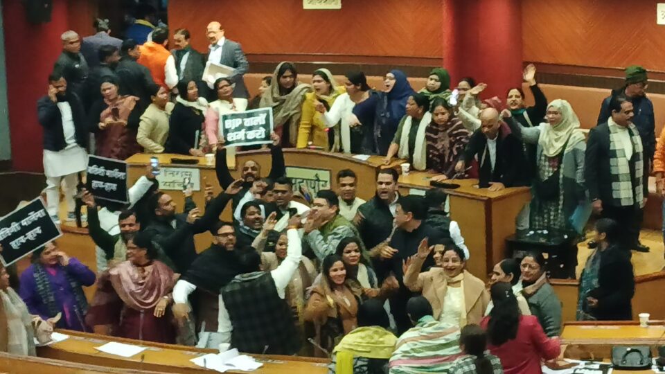 अपमान को लेकर दिल्ली MCD में AAP का हल्ला बोल हुआ।