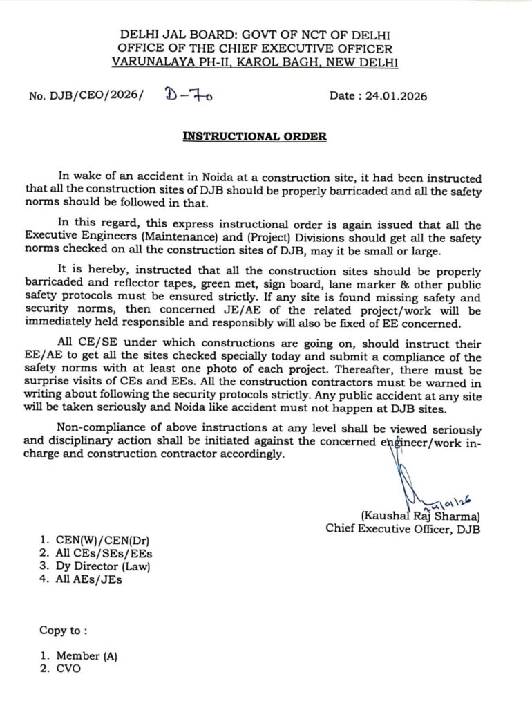 Virendra Sachdeva stated that as far as the accident is concerned, following the death of a youth in Noida recently, the Delhi government had been very alert, and on 24 January the Delhi Jal Board had issued a circular directing that proper barricades must be installed at every excavation site. The circular clearly stated that in the event of any accident, the project in-charge engineer and the contractor would be held responsible.
